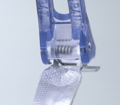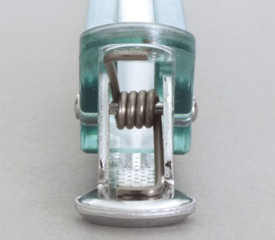 パーマ液やトリートメント等が手に付いていてもクリップを開く時滑らないように、グリップ部分(上下)に滑り止め加工を施しました。(PAT.)