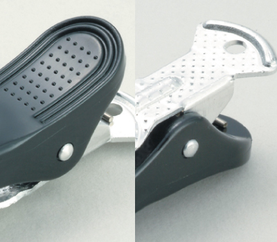 パーマ液やトリートメント等が手に付いていてもクリップを開く時滑らないように、グリップ部分(上下)に滑り止め加工を施しました。(PAT.)